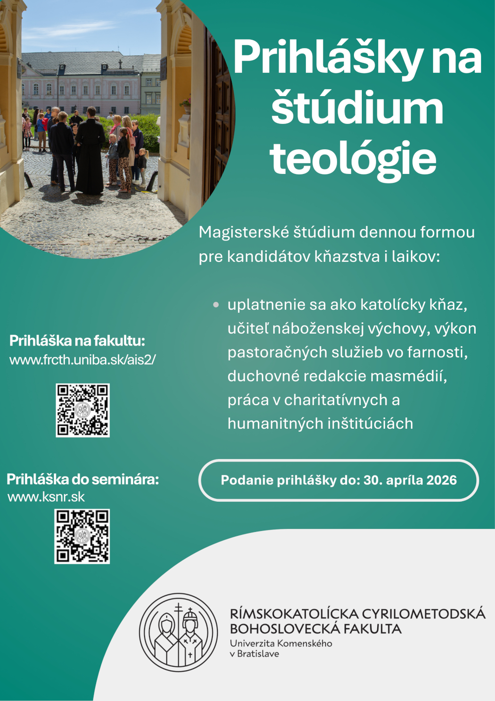Rímskokatolícka cyrilometodská bohoslovecká fakulta Univerzity Komenského v Bratislave otvára svoje brány všetkým, ktorí túžia prehĺbiť si svoju vieru, poznanie i službu druhým.